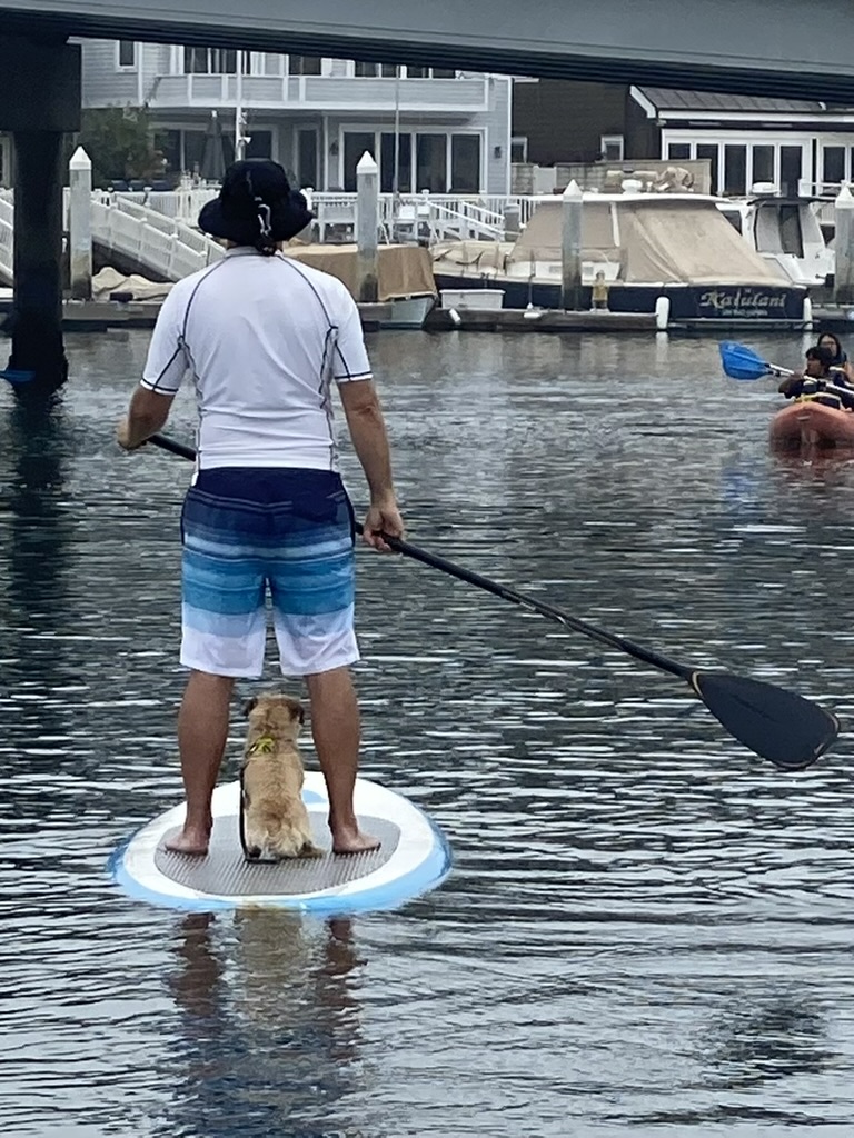 As we were heading back to shore that second time, another paddler called out to us that the dog needed a life vest or we could be fined $250 by the lifeguards. We had never heard this before. Our friend’s son who was lifeguarding at the this beach over the summer said he didn’t know if that was true, but they had better things to worry about our dog’s life vest.
